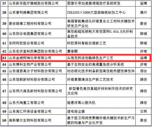 5月23日,由山東省工業和信息化廳、機械科學研究總院主辦,新華社瞭望智庫提供獨家智力支持的“制造業高質量發展2019山東論壇暨山東制造·硬科技TOP50品牌榜發布儀式”在濟南召開。金城醫藥集團(SZ300233)旗下企業山東金城柯瑞化學有限公司在全省近千家參評企業中脫穎而出,成功入選山東制造?硬科技TOP50品牌榜。