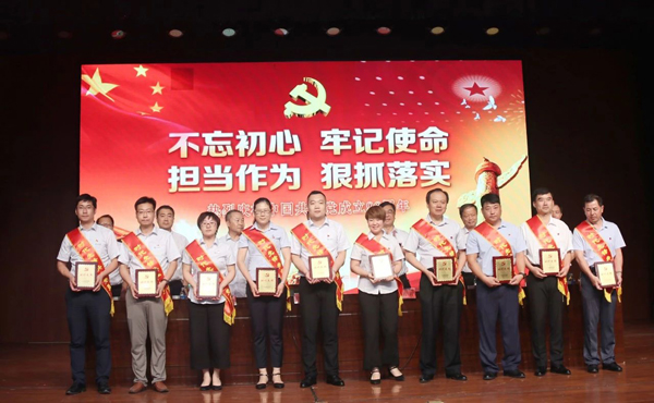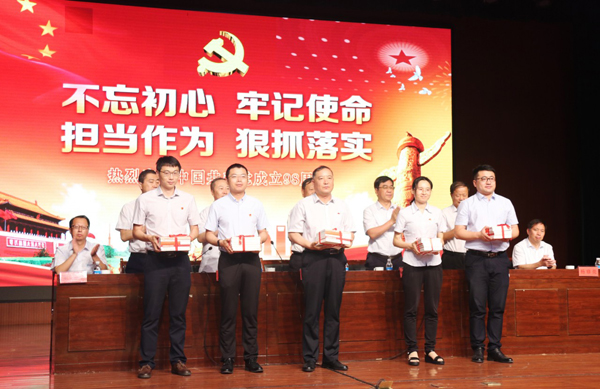 6月29日,金城醫(yī)藥黨委慶祝中國共產(chǎn)黨成立98周年大會(huì)在集團(tuán)會(huì)堂召開。會(huì)議主要內(nèi)容是回顧黨的光輝歷程,總結(jié)公司取得的發(fā)展成就,對(duì)今年開展的“新時(shí)代、新理念、新?lián)?dāng)”活動(dòng)中涌現(xiàn)出來的“過硬支部”、“先進(jìn)黨小組”、“時(shí)代先鋒”共產(chǎn)黨員進(jìn)行表彰。通過學(xué)習(xí)習(xí)近平新時(shí)代中國特色社會(huì)主義思想,全面總結(jié)“不忘初心,牢記使命,爭(zhēng)做時(shí)代先鋒”活動(dòng),進(jìn)一步推動(dòng)“新時(shí)代、新理念、新?lián)?dāng)”創(chuàng)建活動(dòng)深入開展,發(fā)揚(yáng)黨的優(yōu)良傳統(tǒng),傳承金城精神,開拓創(chuàng)新、干事創(chuàng)業(yè),全面完成2019年的各項(xiàng)目標(biāo)任務(wù),實(shí)現(xiàn)公司健康穩(wěn)定發(fā)展。公司黨委成員、紀(jì)委成員、全體黨員、入黨積極分子,以及退休的老黨員參加會(huì)議。