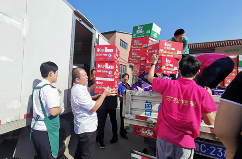 8月15日一早,兩輛滿載金城醫藥集團深情厚愛的車輛駛進淄川經濟開發區鳳凰商會統一存儲發放的倉庫,集中駛向受災最嚴重的太河鎮……