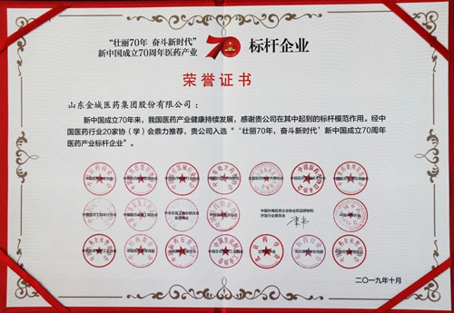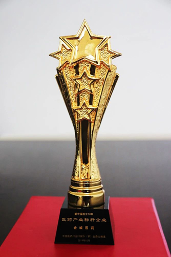 10日晚,在“壯麗70年 奮斗新時代”新中國醫(yī)藥70年慶祝晚會上,金城醫(yī)藥獲頒“新中國成立70周年醫(yī)藥產(chǎn)業(yè)標(biāo)桿企業(yè)”榮譽稱號。