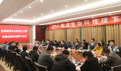 近日,金城醫藥與山東理工大學在醫藥集團會議中心舉辦首屆生物科技稷下論壇。金城醫藥集團總經理張學波,金城生物研發團隊、產業公司研發團隊、藥物研究院研發團隊骨干參加論壇,山東理工大學生命科學學院黨總支書記郭萬保、生命科學學院副院長巴連良、生物制藥研究院院長申亮等15名博士專家團隊參加論壇活動。