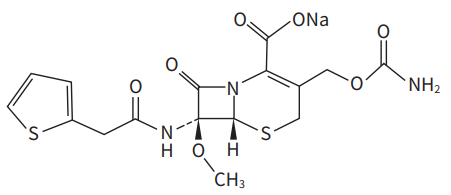 化學名稱:(6R,7S)-3-(氨基甲酰氧甲基)-7-甲氧基-8-氧代-7-[2-(2-噻吩基)乙酰氨基]-5-硫雜-1-氮雜雙環(huán)-[4.2.0]辛-2-烯-2-羧酸鈉鹽。