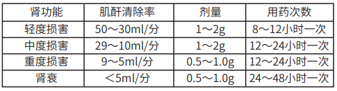 腎功能不全者則需按肌酐清除率調整劑量,按下表進行:
