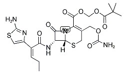化學名稱:(6R,7R)-3-(((氨基甲酰)氧)甲基)-7-(((2Z)-2-(2-氨基-4-噻唑基)-1-氧代-2-戊烯)氨基)-8-氧代-5-硫雜-1-氮雜雙環[4.2.0]辛-2-烯-2-甲酸 (2,2-二甲基-1-氧代丙氧基)甲基酯; 頭孢卡品酯及其中間體(研發)
