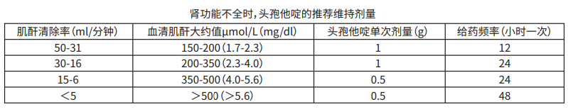 兒童的肌酐清除率應根據體表面積或無脂體重作調整。對于腎功能不全的患兒應與成人一樣減少給藥頻率。在血透過程中,頭孢他啶的血清半衰期為3至5小時。每次血透結束后,應重復給予適當的頭孢他啶的維持劑量。