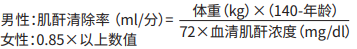 當僅有血清肌酐濃度時,下式(Cockcroft公式)用于估計肌酐清除率。血清肌酐清除率代表腎功能的穩定狀態: