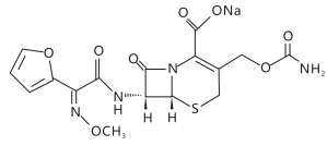 化學名稱:(6R,7R)-7-[2-(呋喃-2-基)-2-(甲氧亞氨基)乙酰氨基]-3-氨基甲酰氧甲基-8-氧代-5-硫雜-1-氮雜雙環[4.2.0]辛-2-烯-2-甲酸鈉鹽。